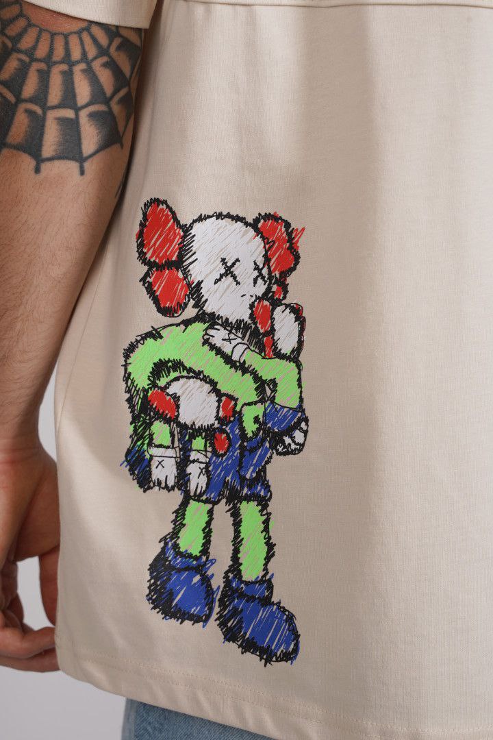 Tricou oversize imprimat si brodat din bumbac organic cu decolteu rotund, umeri cazuti si baza dreapta.