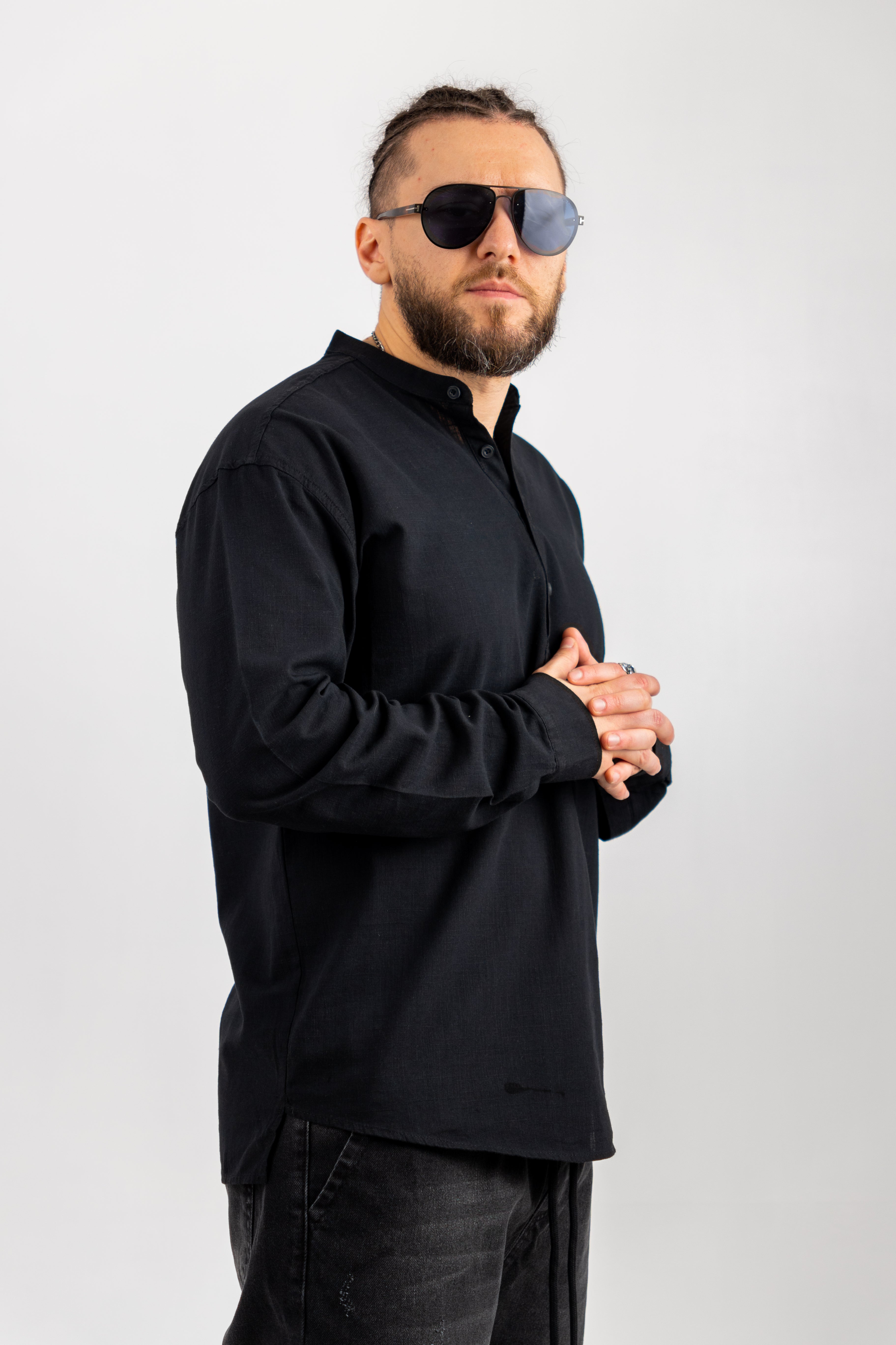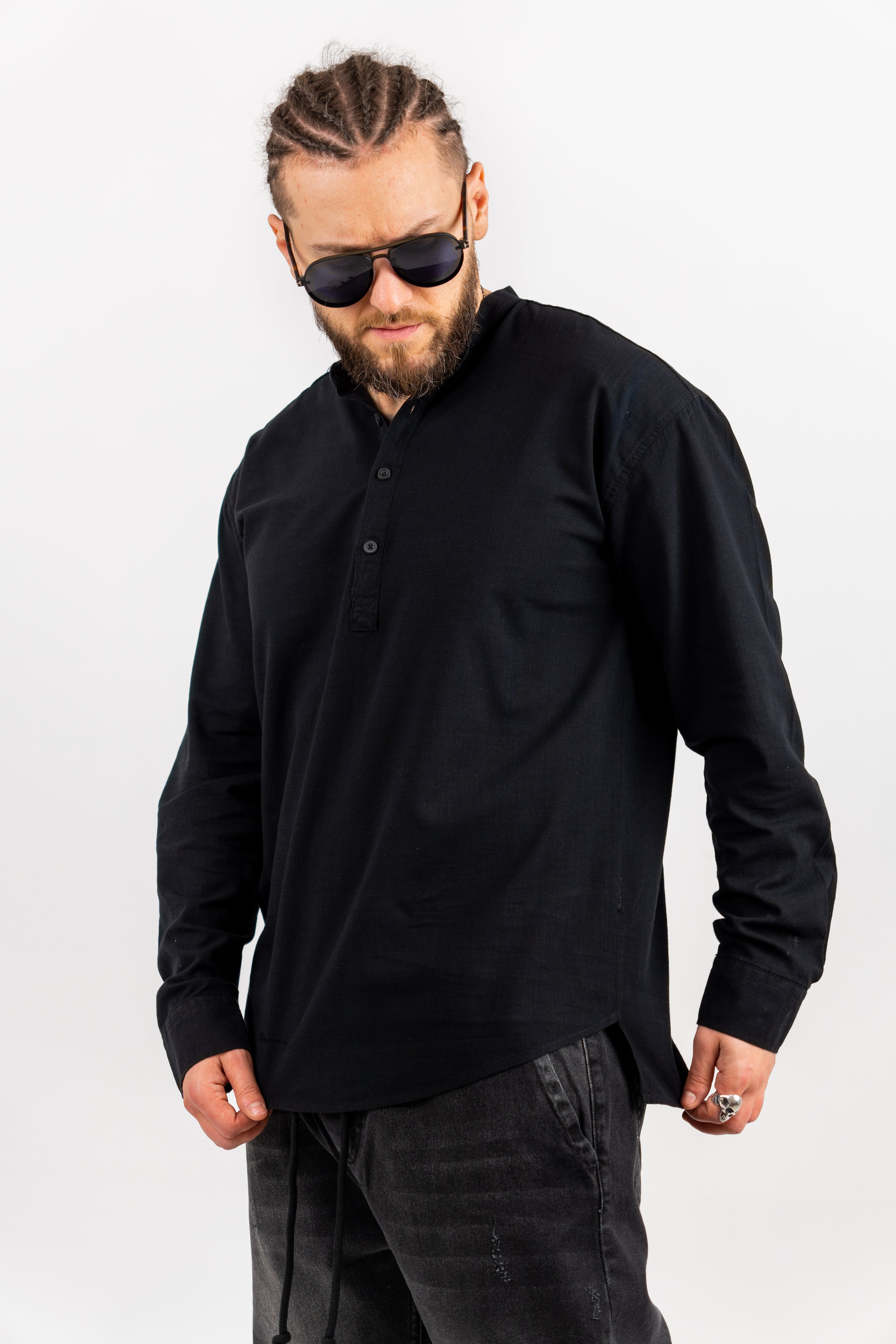 Cămașă oversize confecționată din țesătură de bumbac 100%.  Mânecă lunga. Închidere frontală cu rând de nasturi.