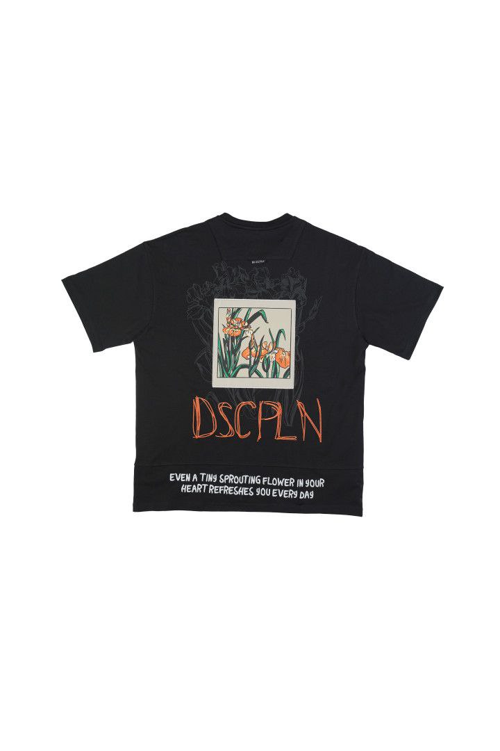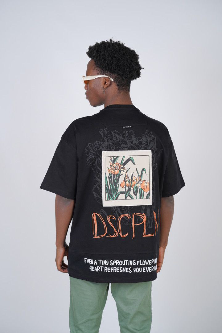 Tricou oversize imprimat si brodat din bumbac organic cu decolteu rotund, umeri cazuti si baza dreapta.