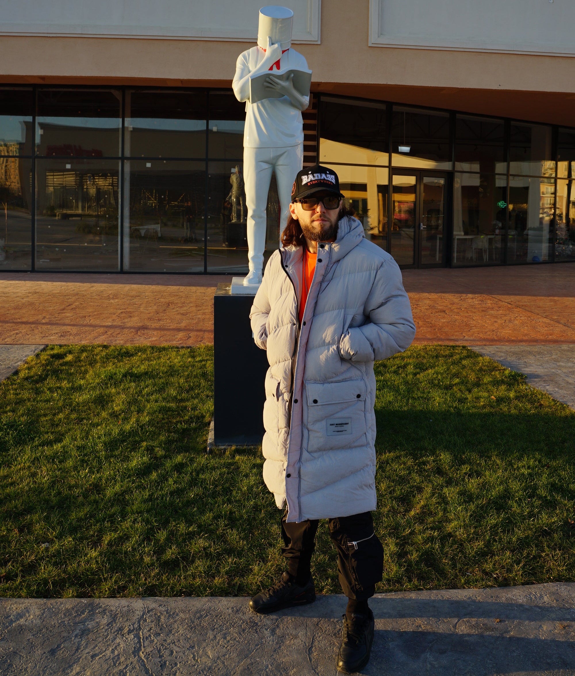 GEACA LUNGA UNISEX GRI CU GLUGA "BE YOURSELF"