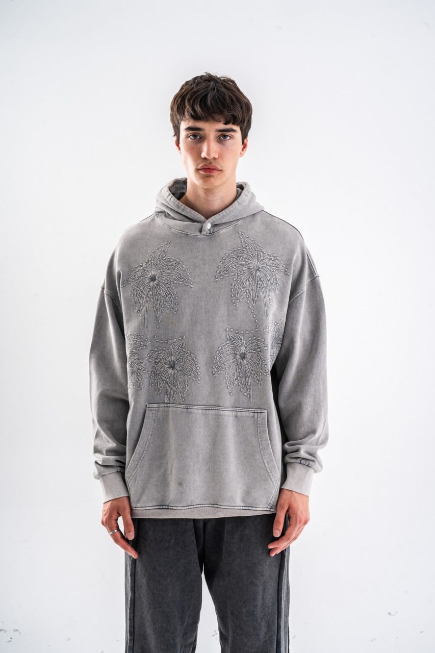 Hanorac oversize brodat, din bumbac organic, umerii cazuti si baza dreapta.