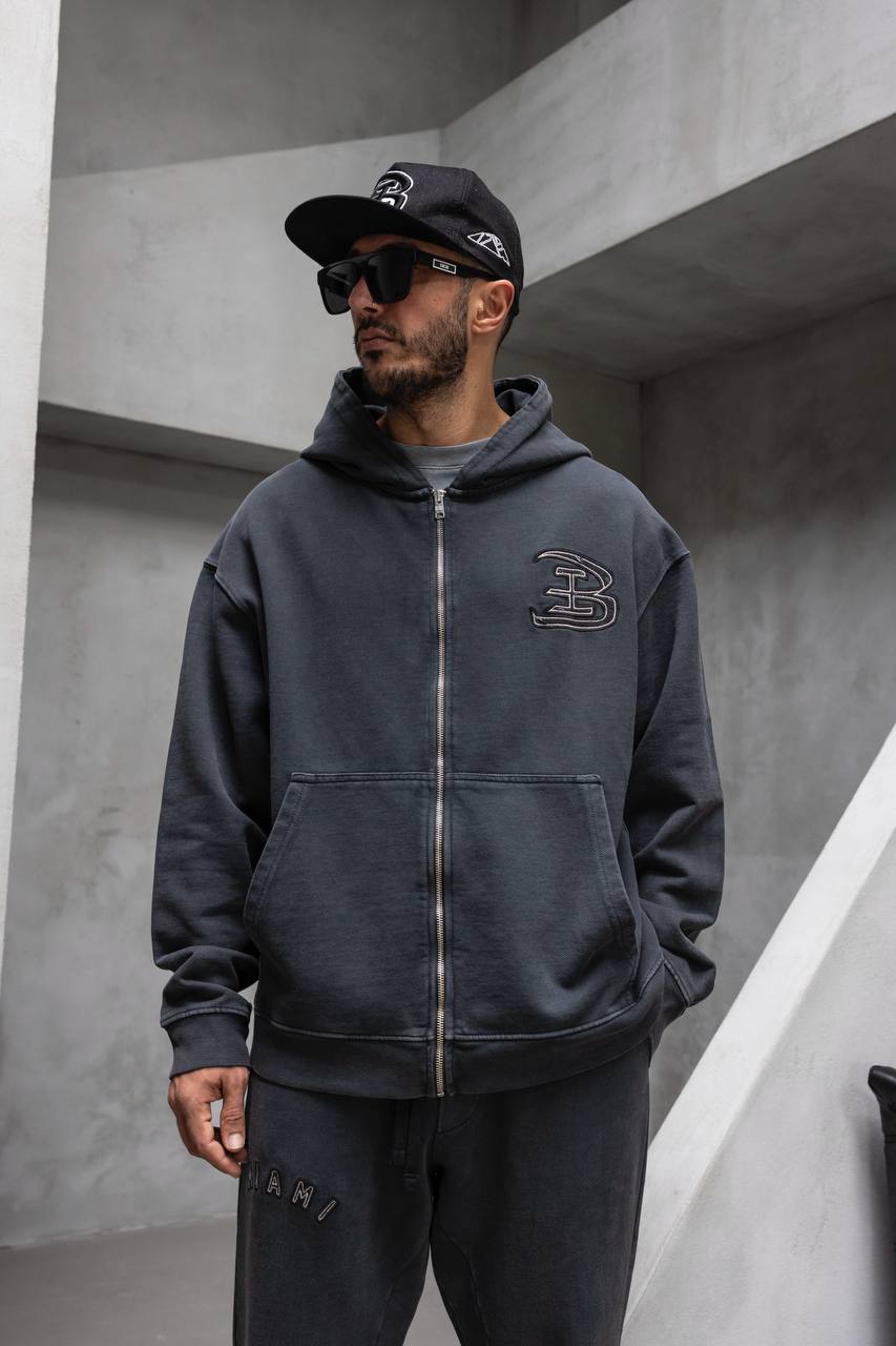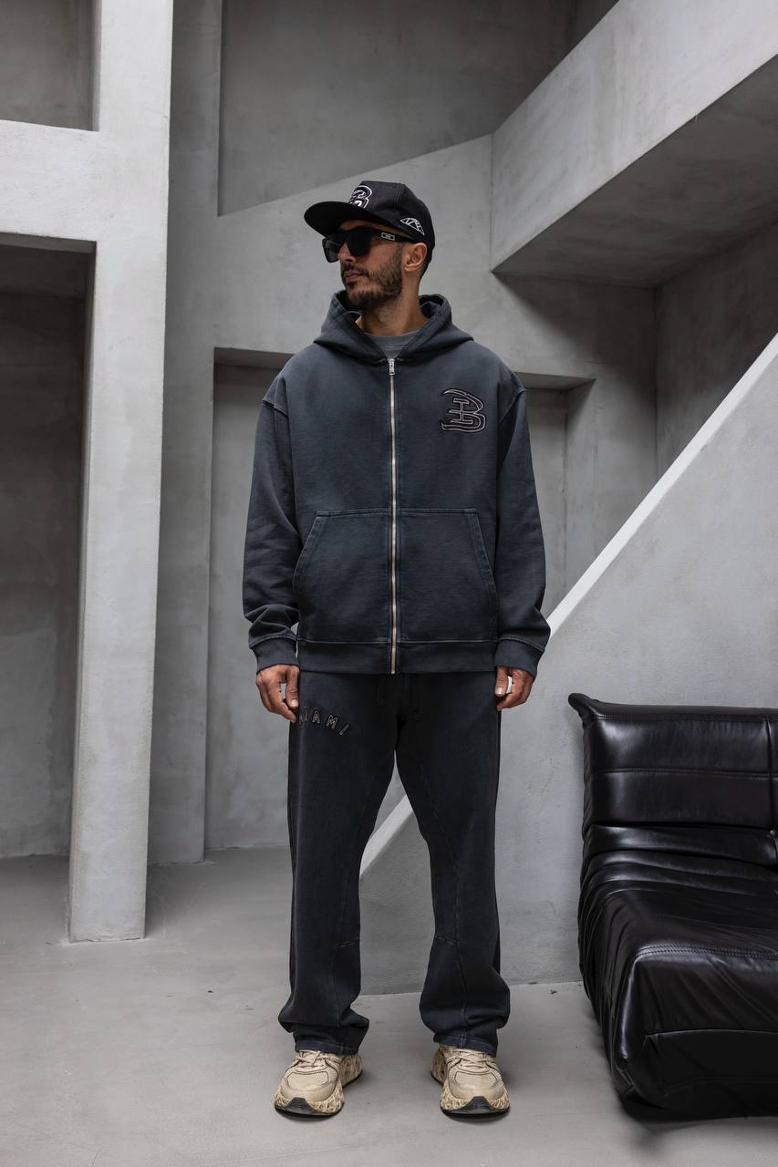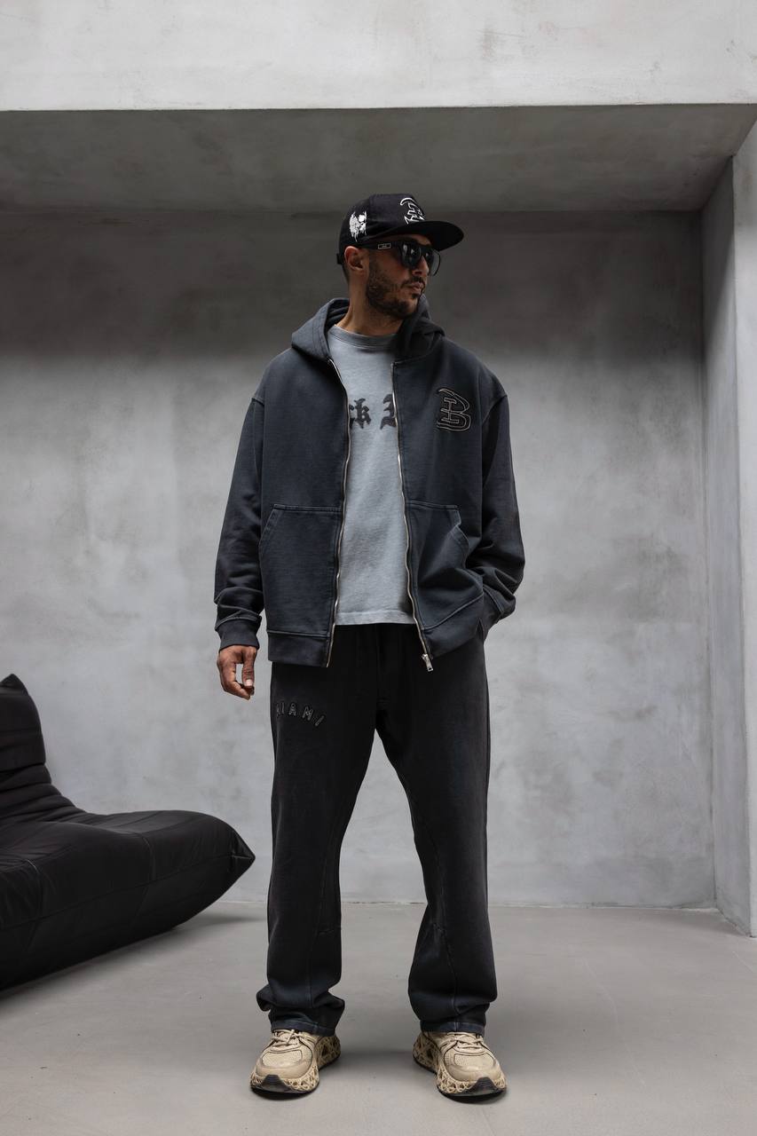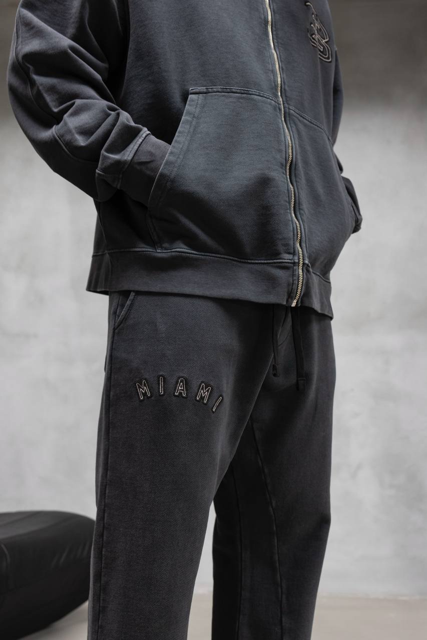 Efectul washed charcoal îi dă un look matur, raw, iar broderiile 3D MIAMI și BLACK ISLAND adaugă un statement vizual solid.