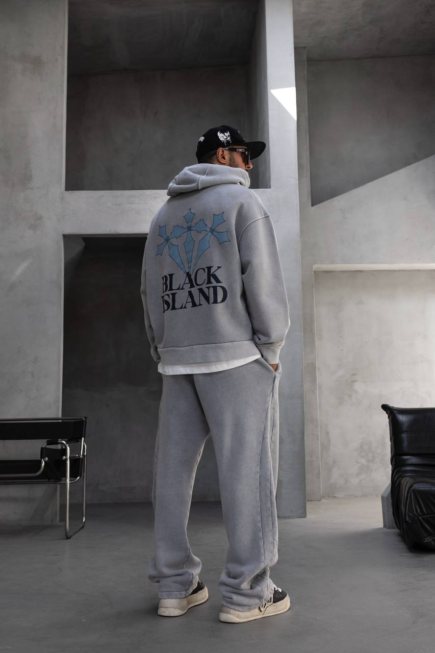 Designul minimalist în față este completat de grafică statement BLACK ISLAND pe spate — o declarație de stil care nu are nevoie de interpretare.