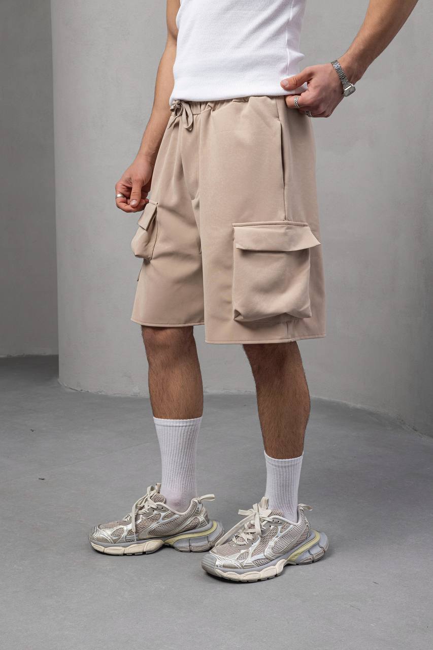 Pantalonii scurți Cargo Oversized „Desert Sand” sunt realizați din poliester premium cu elastan, un mix modern care oferă durabilitate, elasticitate și o cădere impecabilă pe corp.