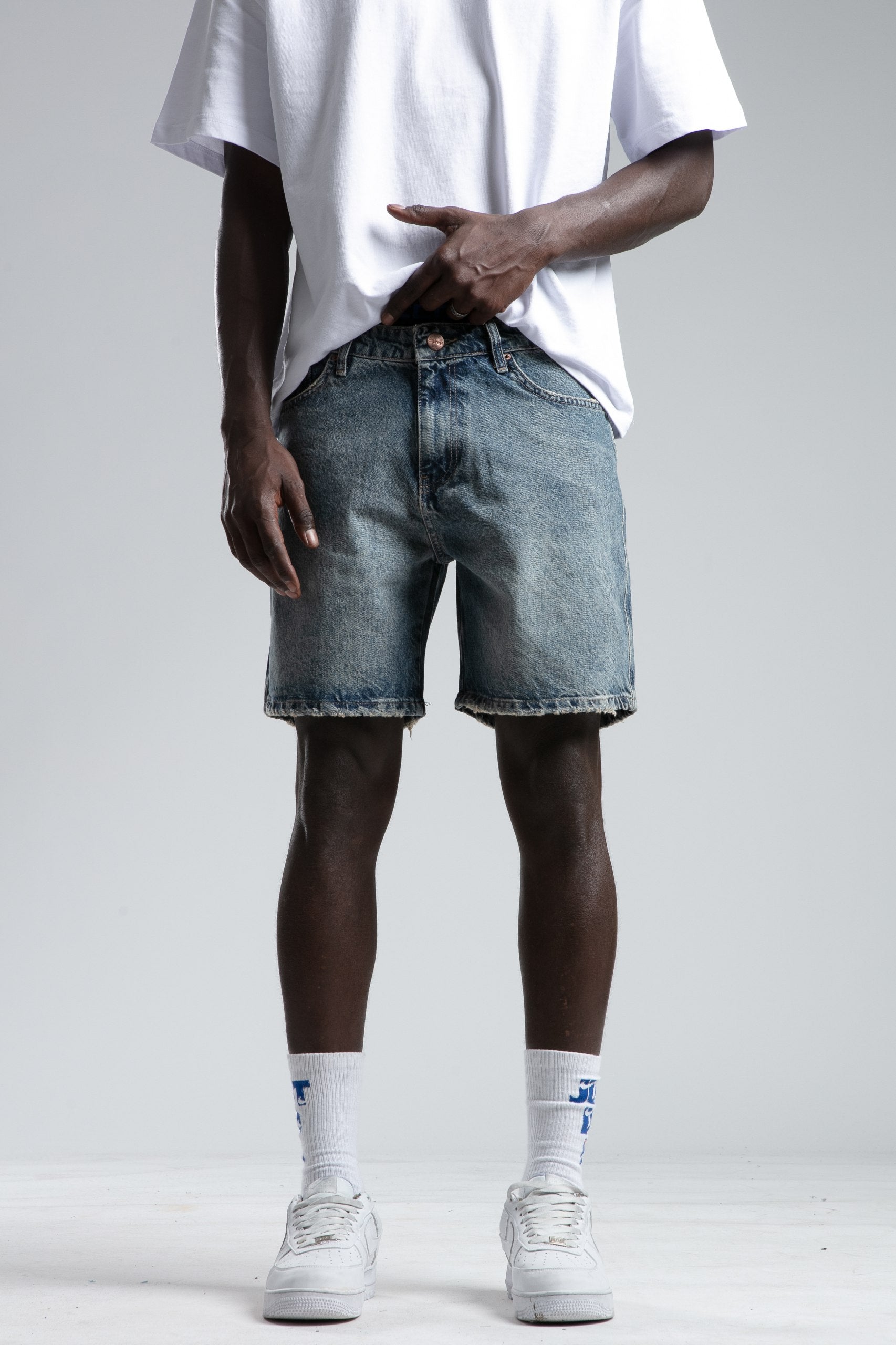 Blugi cu croiala lejera, cu finisaj de spalare aleatorie. Cinci buzunare. Închidere cu nasturi și capse în partea de sus.