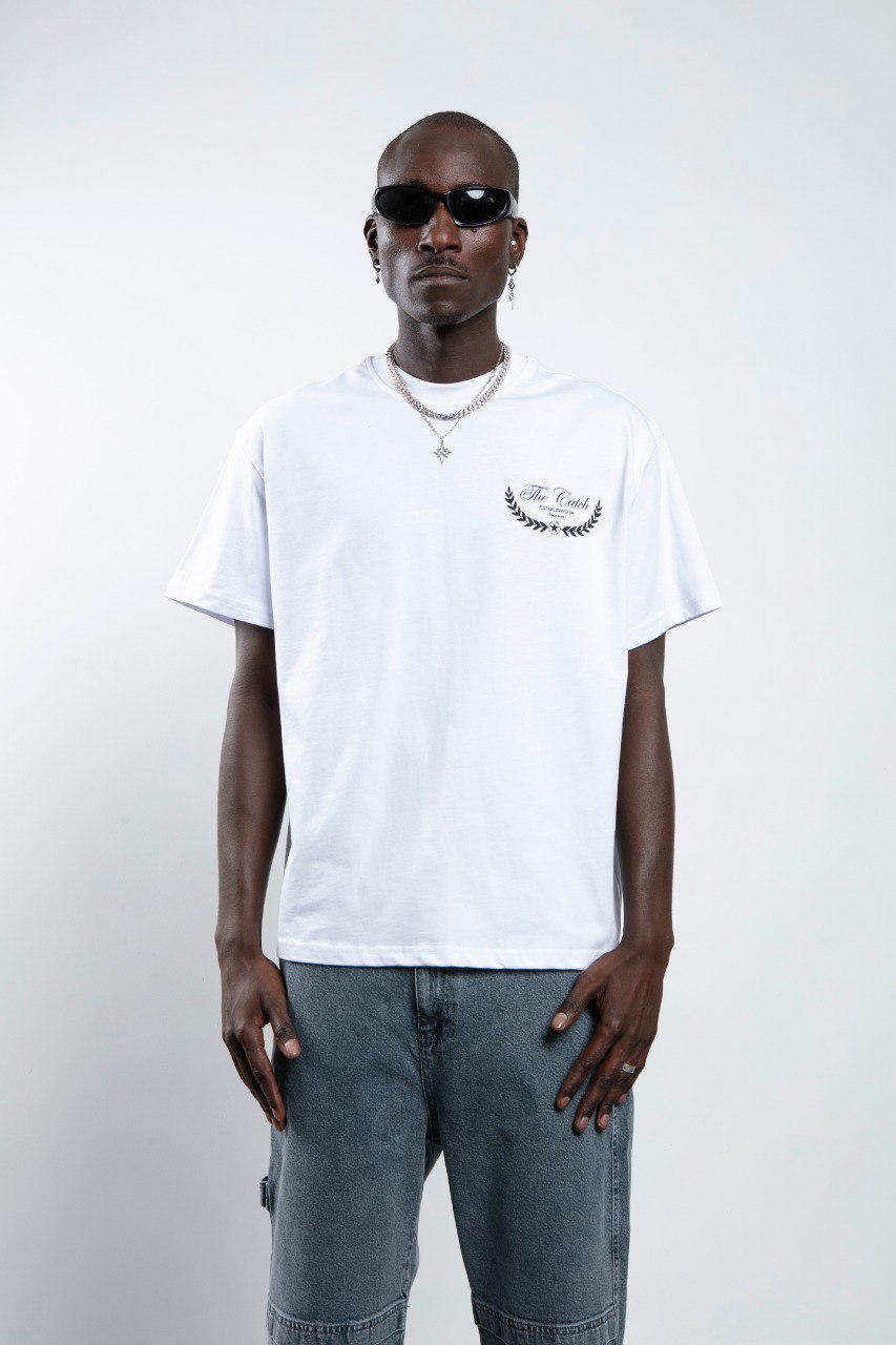 Tricou oversize imprimat, din bumbac organic cu decolteu rotund, umeri cazuti si baza dreapta. Marimea modelului: 187cm/70...