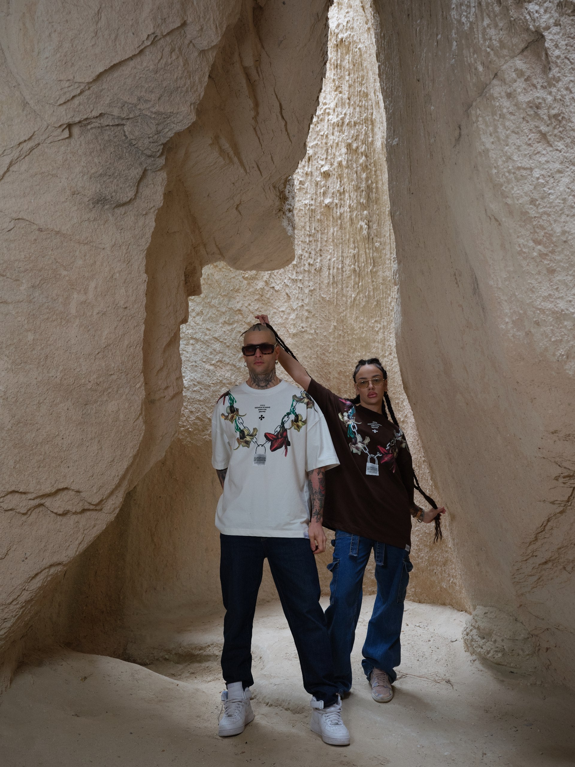 Tricou oversize imprimat, din bumbac organic si elastic reciclat, cu decolteu rotund, umeri cazuti si baza dreapta....