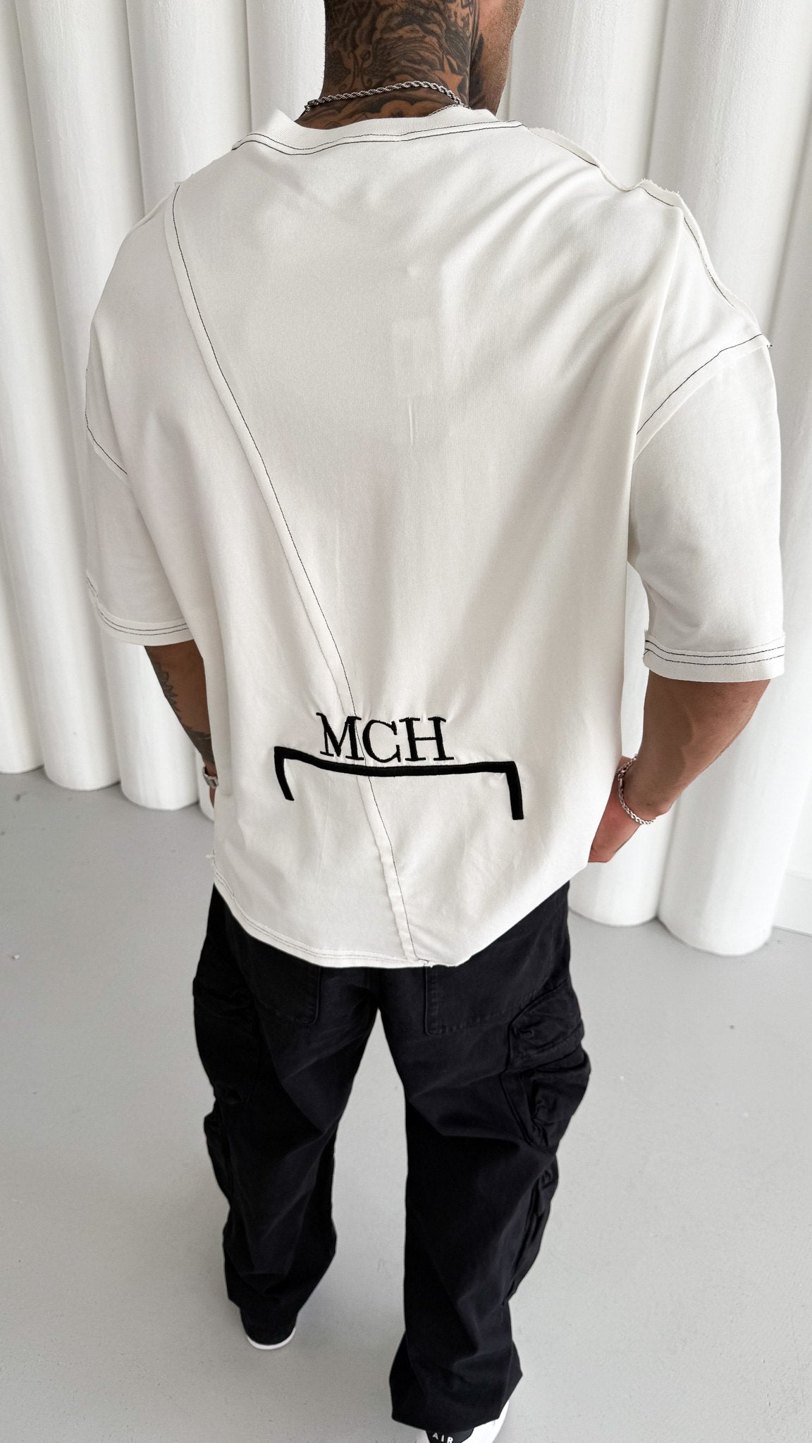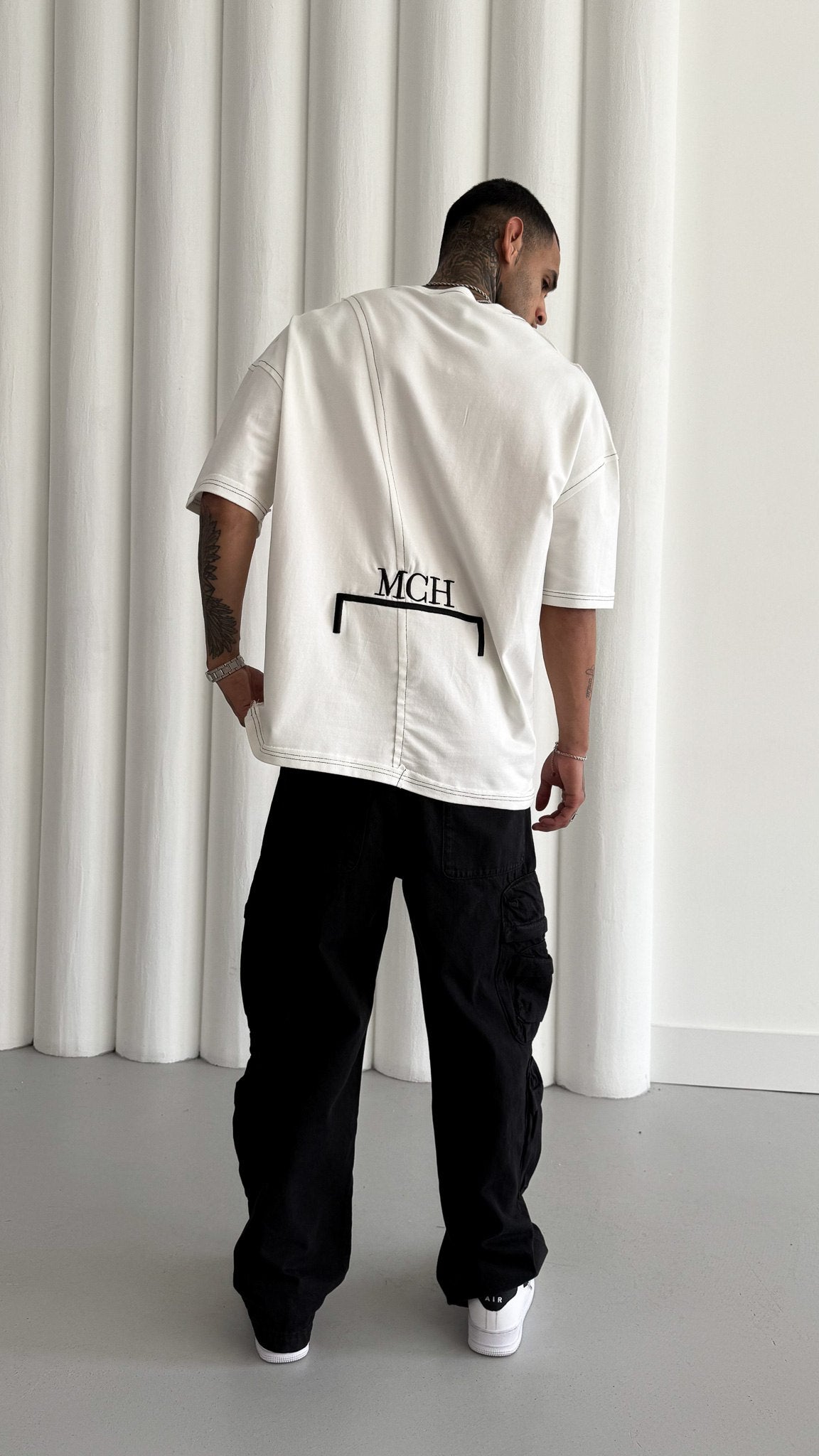 Cu un design care rupe liniile clasice, CROSSCUT /02 redefinește minimalismul cu atitudine. Cusătura diagonală asimetrică și broderia „MCH” din spate creează o estetică curată, dar tehnică – ideală pentru un look urban, precis și nonconformist.