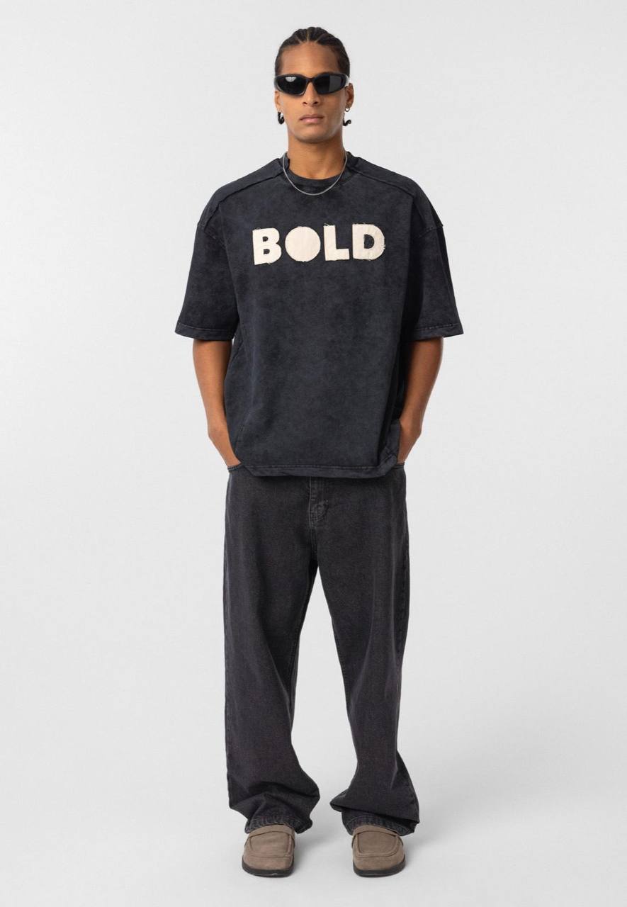 🔹 Print „BOLD” aplicat frontal – efect texturat, ușor raw