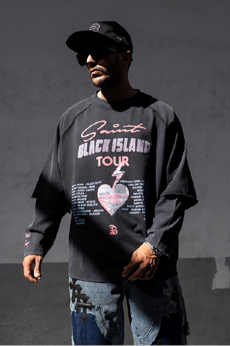 Bluză „Saint Tour – Negru” este inspirată din vibe-ul afișelor de turneu rock, cu grafică puternică și mesaj electric.