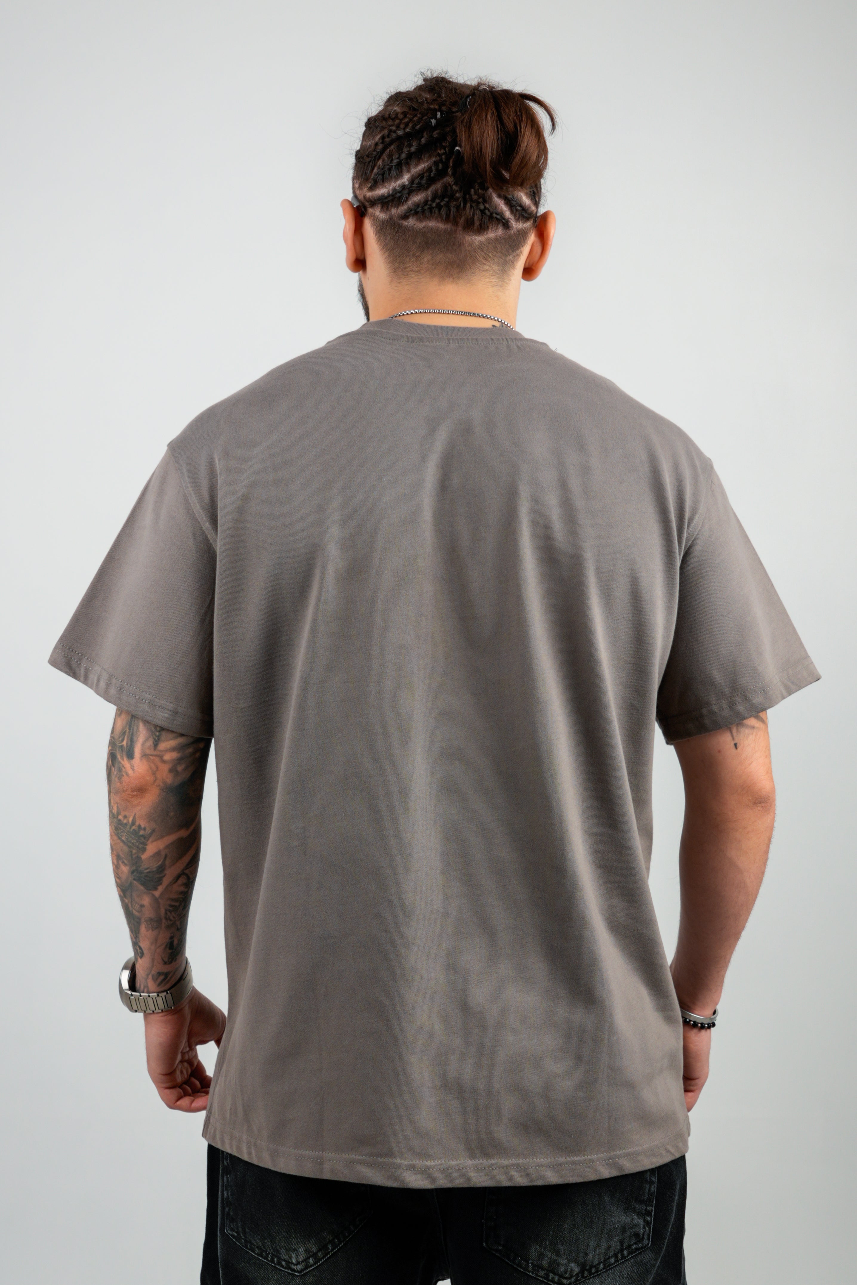 Tricou oversize imprimat, din bumbac organic cu decolteu rotund, umeri cazuti si baza dreapta cu tăietură laterală pe tiv, jos