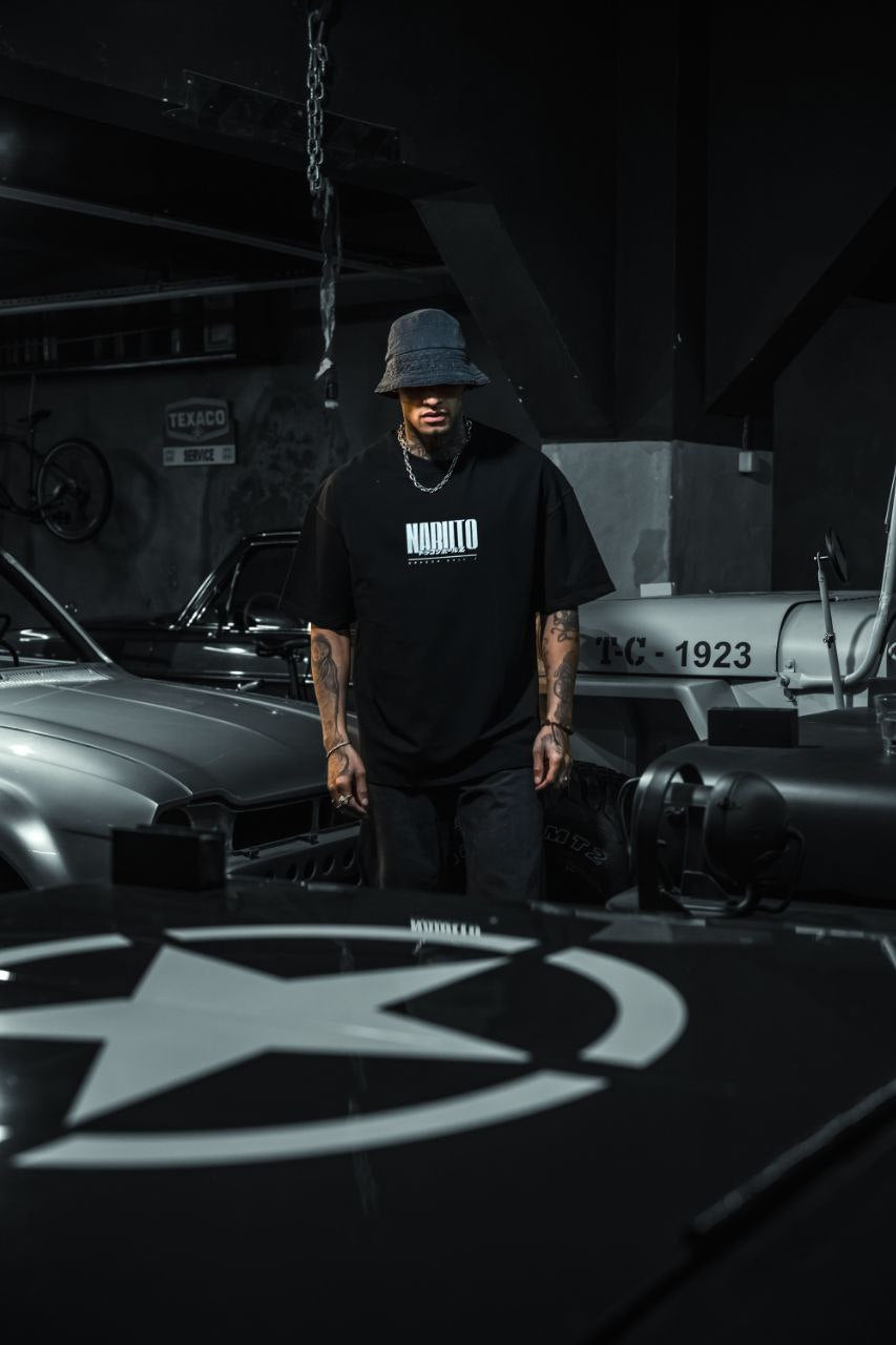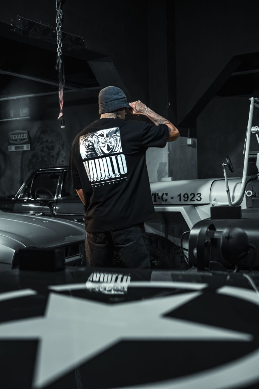 Tricou oversize imprimat din bumbac organic cu decolteu rotund, umeri cazuti si baza dreapta. Marimea modelului: 187cm/70...