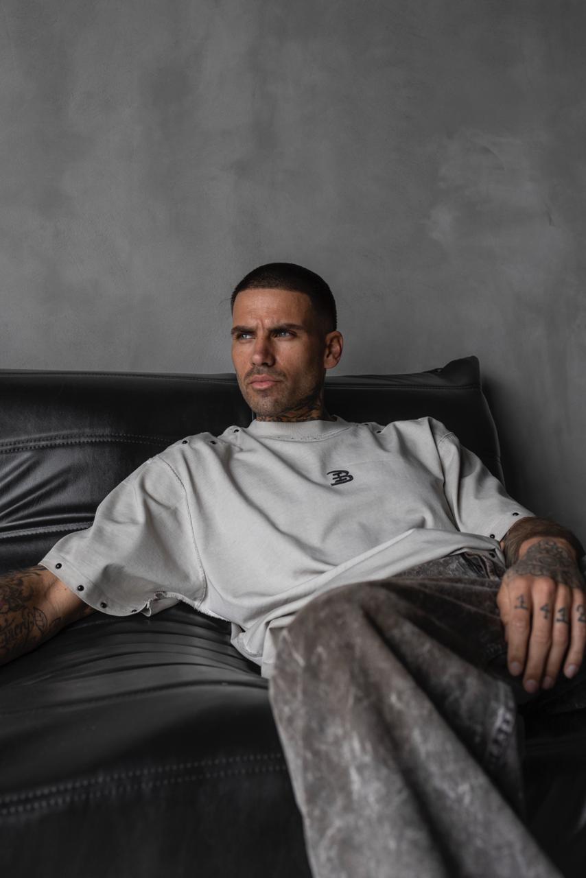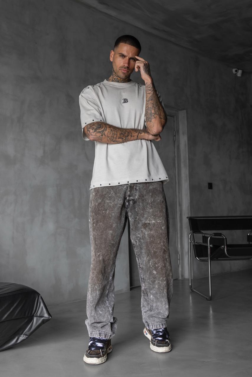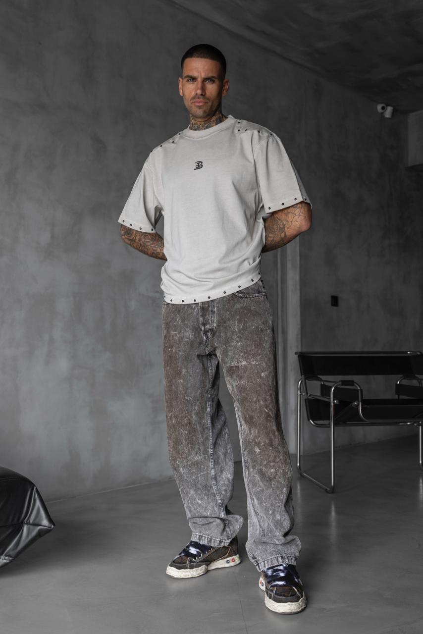 Tricou oversized unisex din 100% bumbac premium, spălare minerală, cu detalii metalice tip rivet pentru un look dur și rafinat.