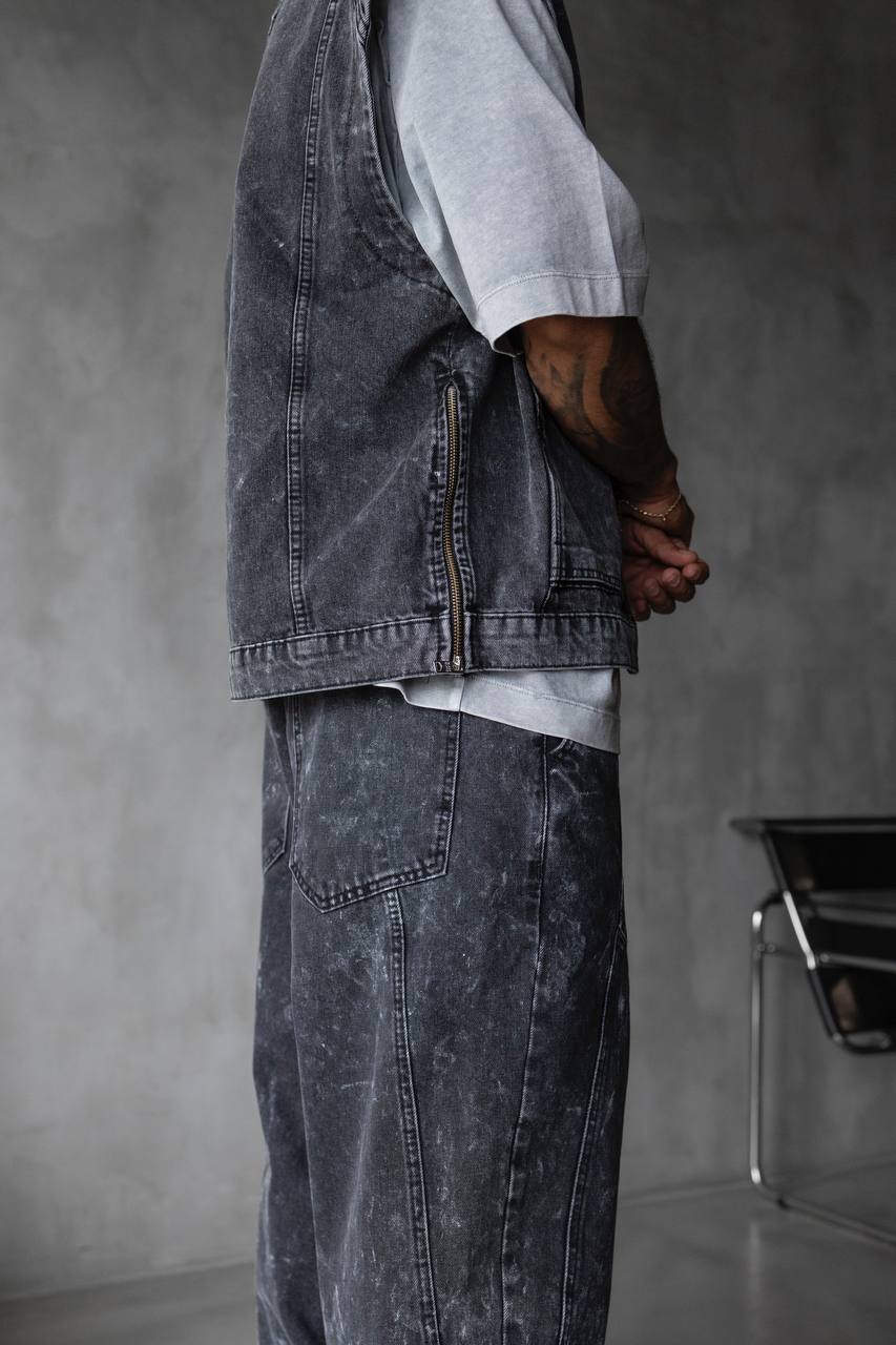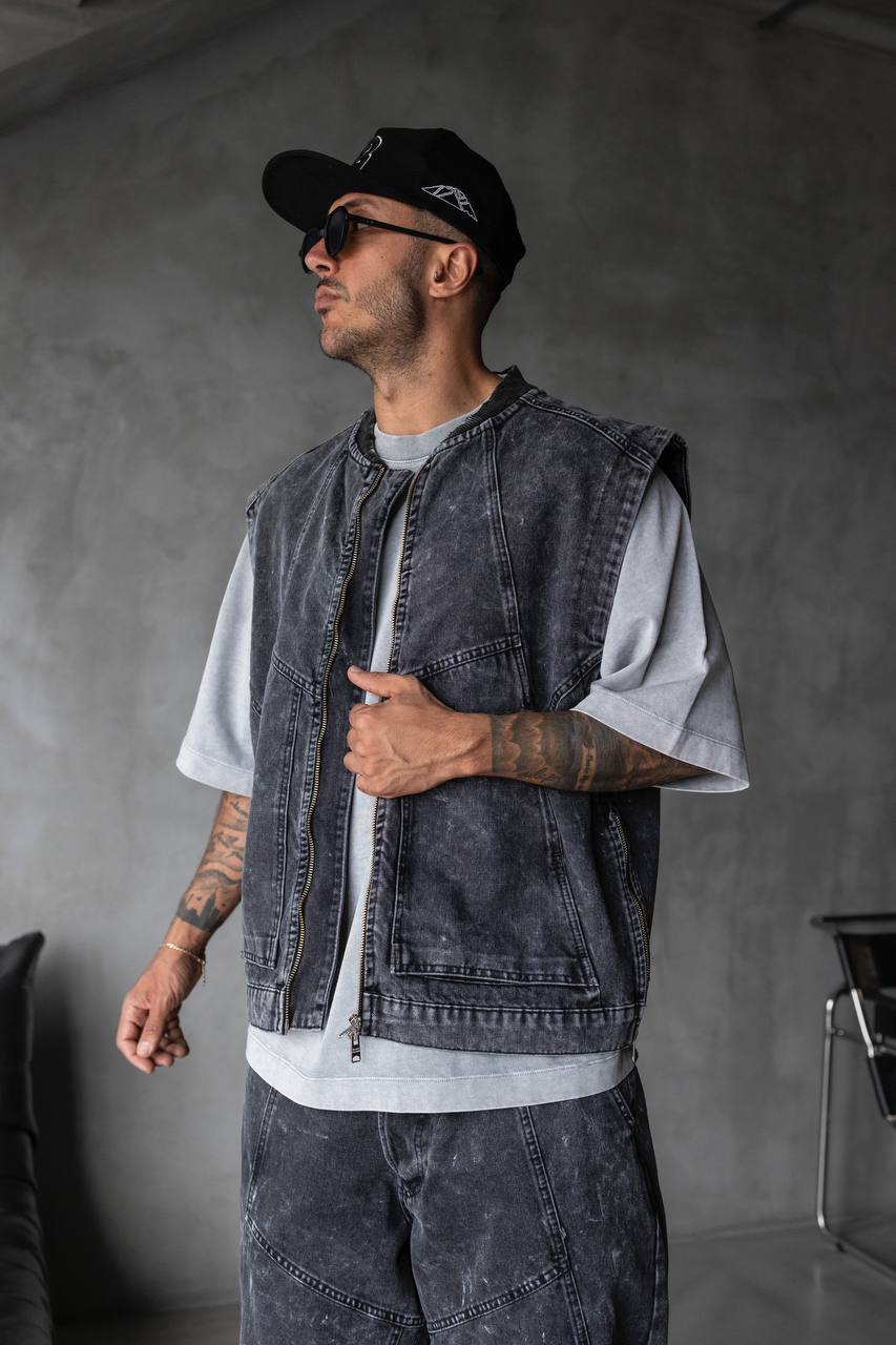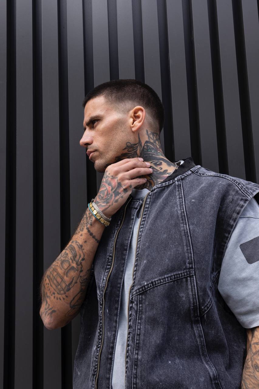 Armura urbană pentru cei care nu vor să treacă neobservați. Vesta „Shadow Armor” este construită din bumbac greu de calitate superioară, tratat cu efect washed pentru un look vintage autentic. Designul robust, fermoarul metalic și croiala relaxată îi oferă un vibe puternic și neconvențional – gata de purtat pe stradă, la festival sau în orice mediu dominat de atitudine.